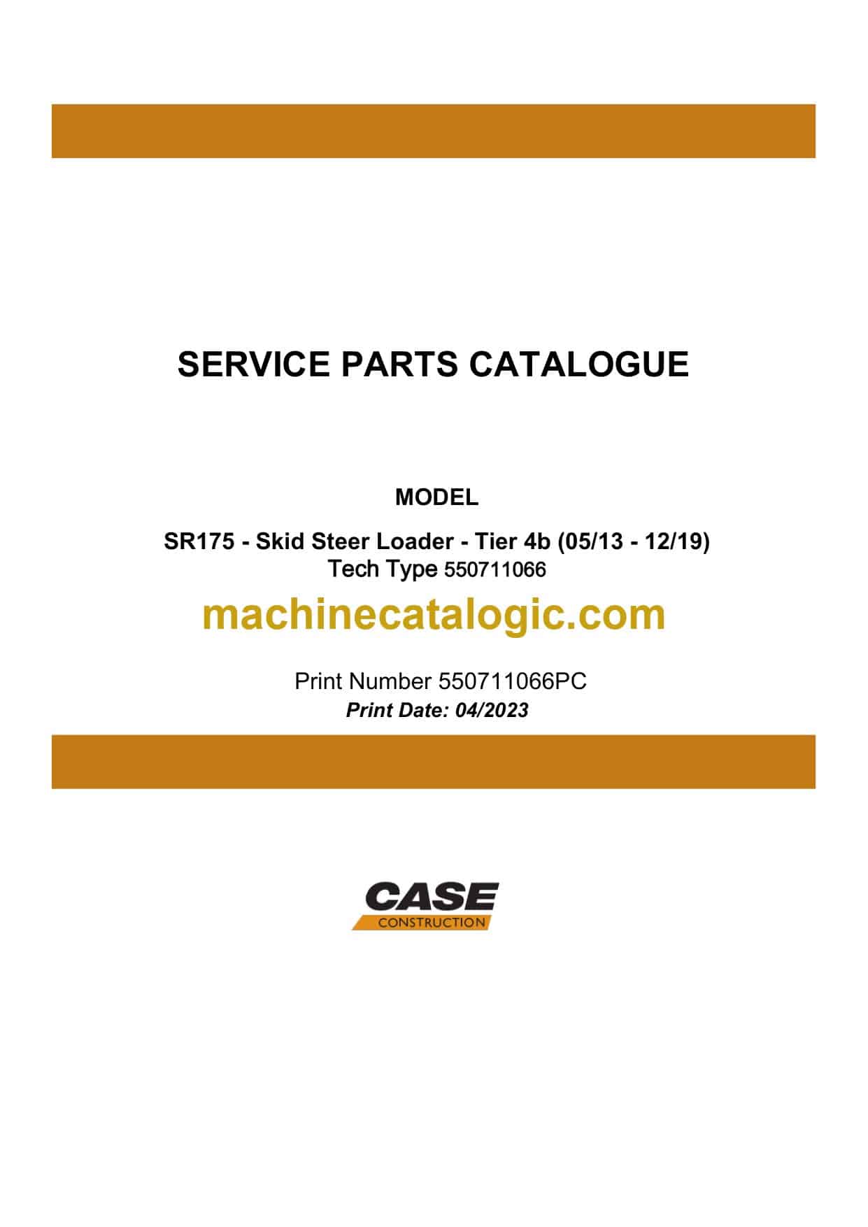 Case SR175 Tier 4B Skid Steer Loader Service Parts Catalogue