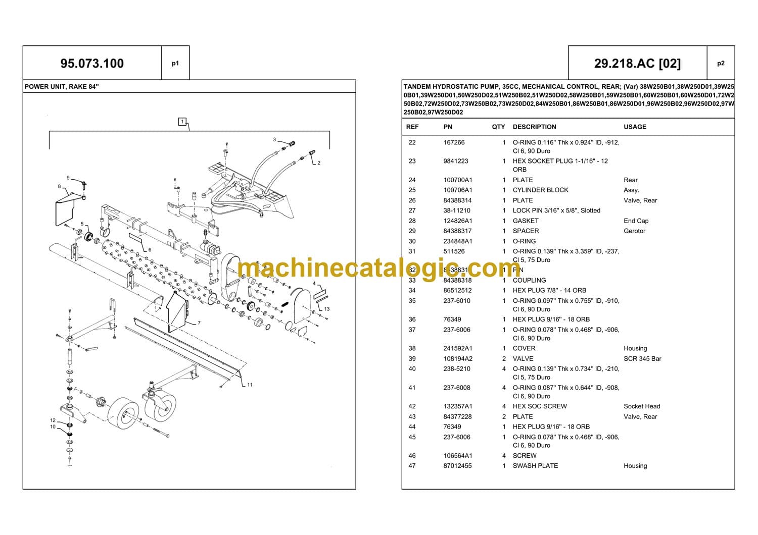 29.218.AC [02] TANDEM HYDROSTATIC PUMP, 35CC, MECHANICAL CONTROL, REAR; (Var) 38W250B01,