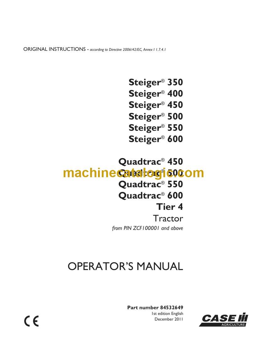 Case Steiger 350, 400, 450, 500, 550, 600 and Quadtrac 450, 500, 550,600 Tier 4 Tractor Operator Manual