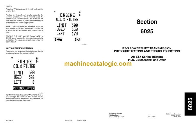 MAXIMUM TRACTOR OPERATING WEIGHT …………………………………………………………………………………………. 9