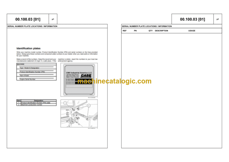 00.100.03 [01] SERIAL NUMBER PLATE LOCATIONS / INFORMATION