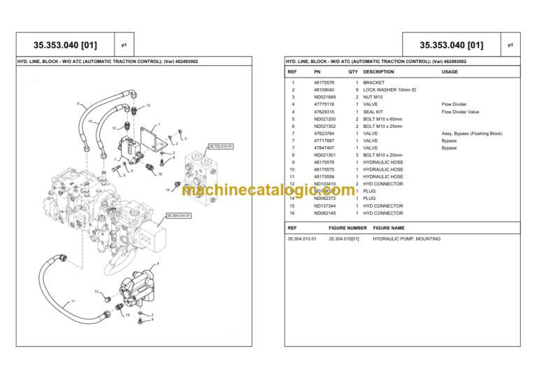 35.353.040 [01] HYD. LINE, BLOCK – W/O ATC (AUTOMATIC TRACTION CONTROL); (Var) 462493002