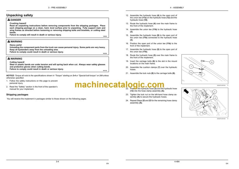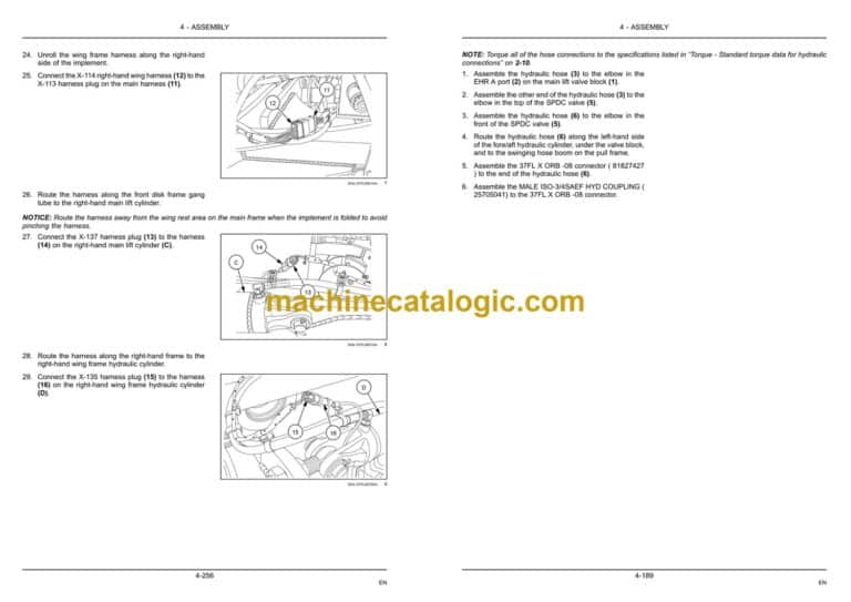 Main frame and wing frame lift hydraulic hose installation – Standard frame control4-128