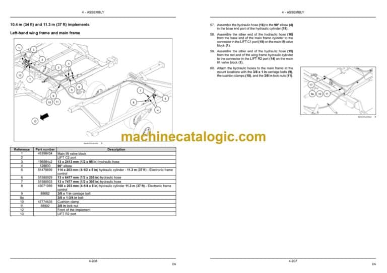Fore/aft cylinder hydraulic fitting and hose assembly – Electronic frame control . 4-142