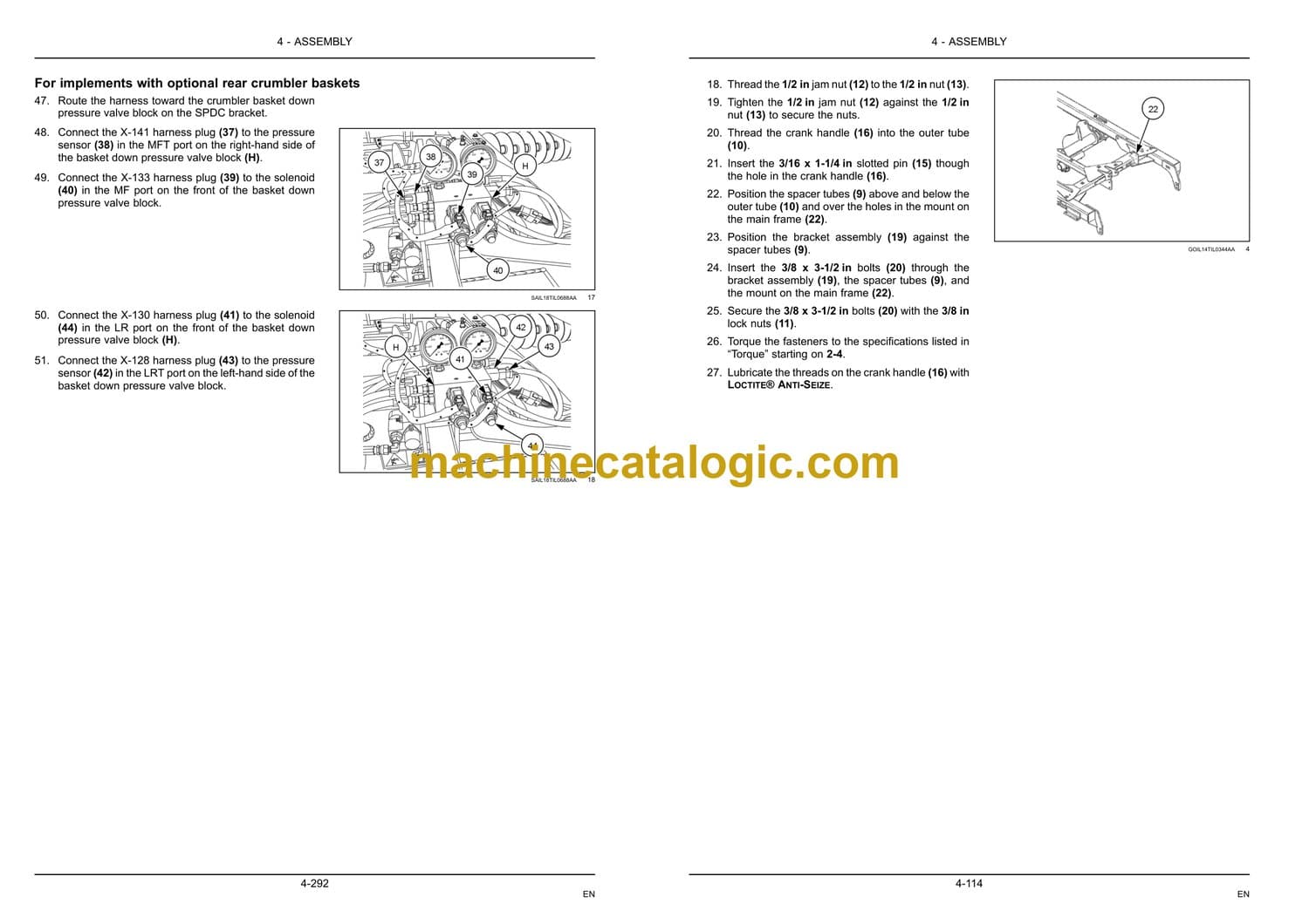 Installation for 6.7 m (22 ft) and 7.6 m (25 ft) implements . . . . . . . . . . . 4-301