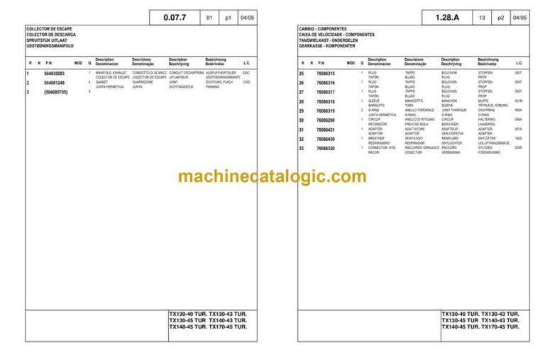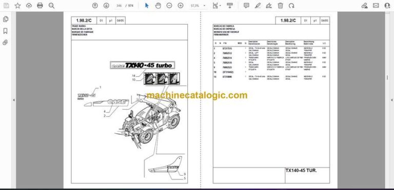 Case TX130-40, TX130-43, TX130-45 TX140-43, TX140-45 TX170-45 Telehandlers Parts Catalog (6-95120_int_USN)