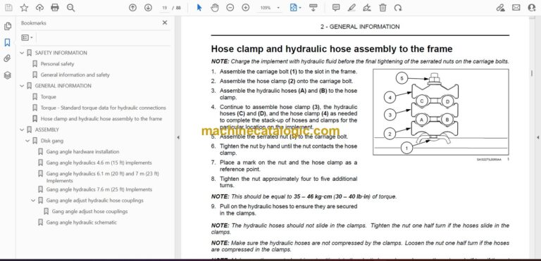 Hose clamp and hydraulic hose assembly to the frame. . . . . . . . . . . . . . . . . . . . . . . . . . . . . . . . . . . 2-13