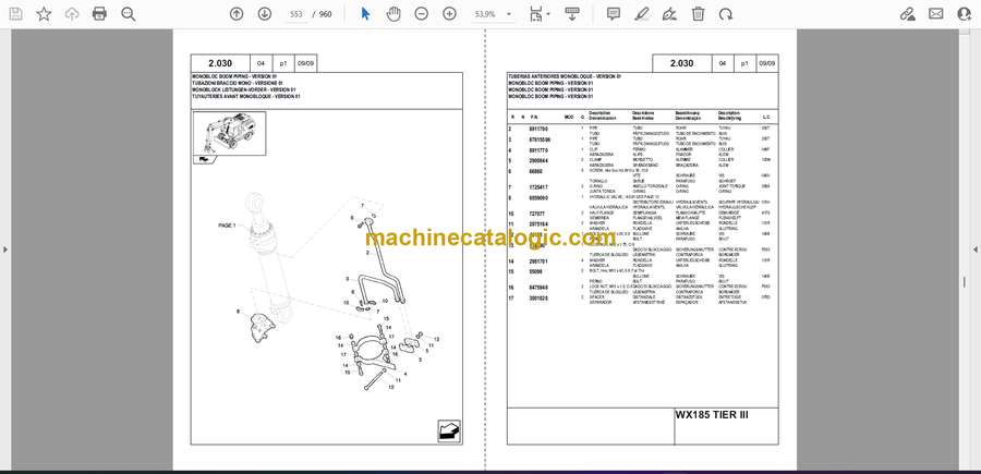 Case WX185 Tier 3 Wheeled Excavator Parts Catalog (87697870B_A4)