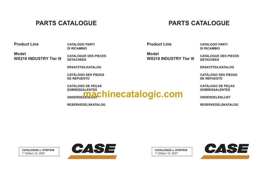 Case WX210 Industry Tier 3 Wheeled Excavator Parts Catalog (87697938_int_A4N)