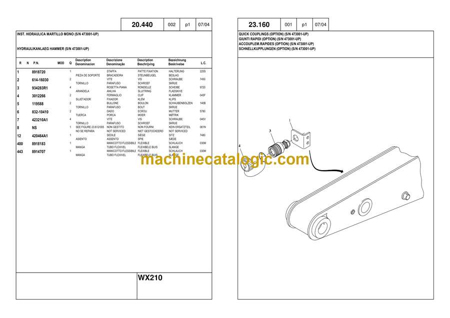 Case WX210 Wheeled Excavator Parts Catalog (7-9441)