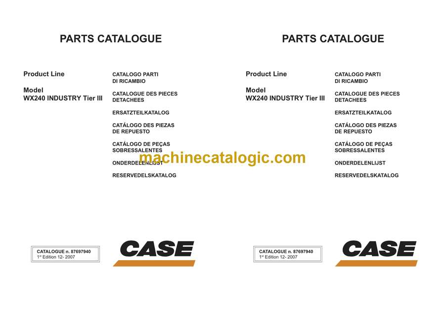 Case WX240 Industry Tier 3 Wheeled Excavator Parts Catalog (87697940)