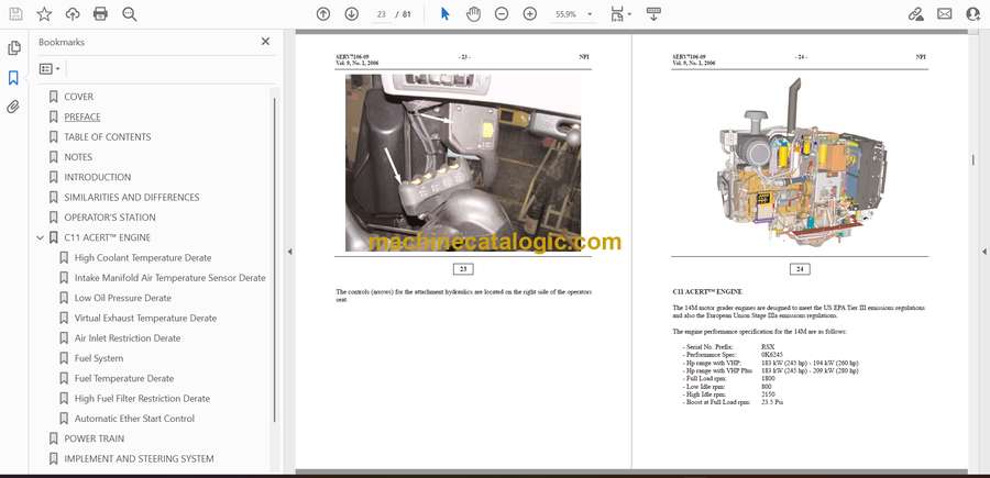 Out on a road job or in a quarry, that 14M grader’s living in dust, vibration, and long pushes shaping haul roads and finish grades. This training manual is about learning how to run and care for it without tearing anything up while you’re still green. It walks you through safe habits, how to trace basic faults, and how to practice on setups before you touch a real production machine. Say the machine derates on a hot afternoon—this is the kind of guide that helps you check the simple stuff first instead of just parking it and calling a truck.