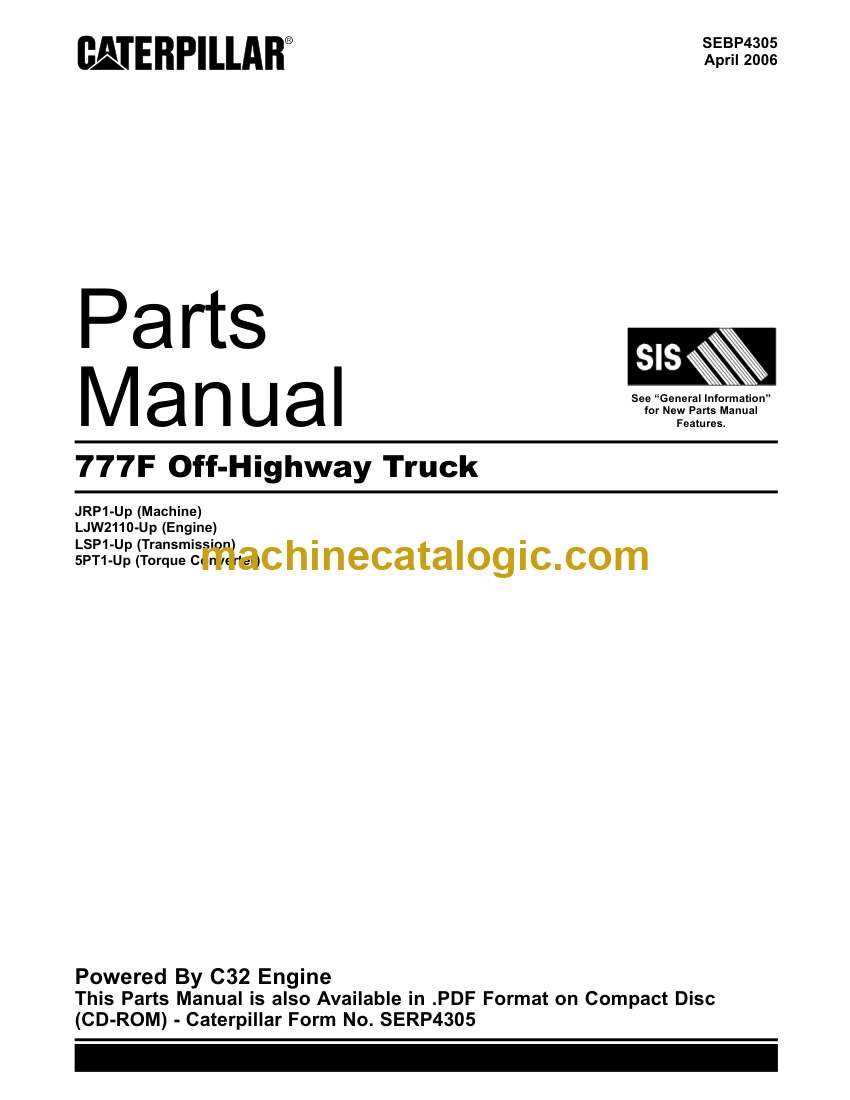 Cat 777F Off-Highway Truck Parts Manual (SEBP4305) (SN JRP1-UP, LJW2110-UP, LSP1-UP, 5PT1-UP)