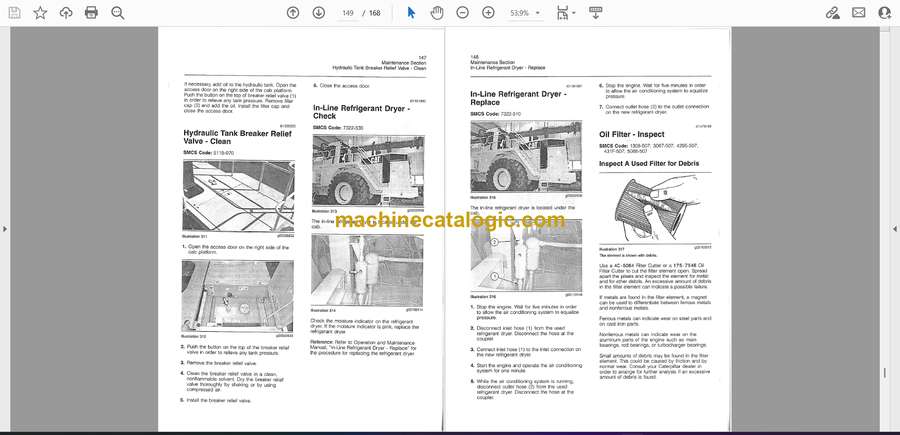 A 992G usually lives in the rough stuff—quarries, mines, big stockpiles—working long shifts loading trucks and feeding crushers. This operation and maintenance manual helps you set a steady rhythm: what to trace and check before startup, what to inspect at shutdown, and how to space your services so the loader’s ready when the haul trucks roll in. Picture this: it’s peak season, night shift calls, machine won’t move because a simple daily fluid check got skipped. This book’s about avoiding that kind of nonsense.