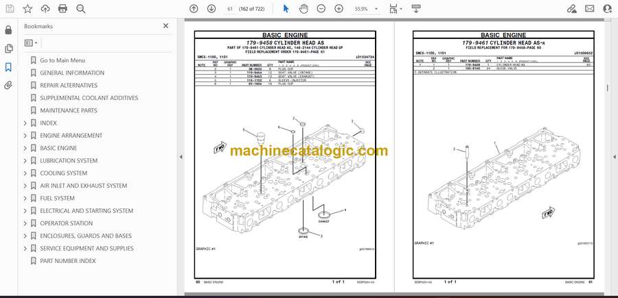 These C10 industrial engines usually live in rough spots—pumps on muddy sites, compressors in dusty plants, or generators that just sit and grind away for hours. This parts manual helps you trace every component on that engine back to the right part number, so you don’t guess at gaskets or order the wrong snap ring. Say you’ve got the front cover off chasing an oil leak and you find a chewed-up seal and a mystery spacer; this book lets you isolate that assembly, break it down, and verify exactly what you need before you call the parts counter.