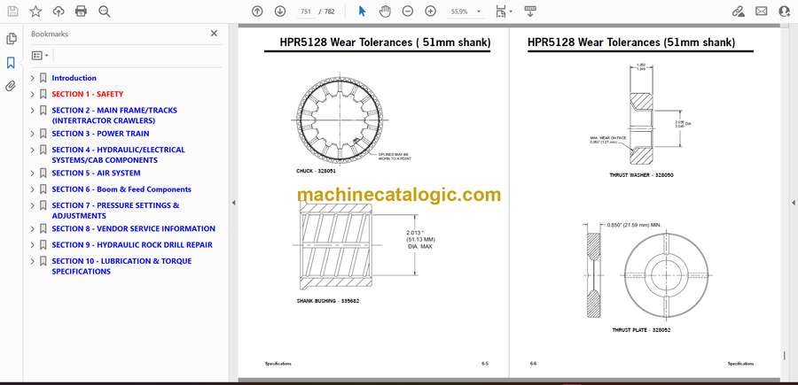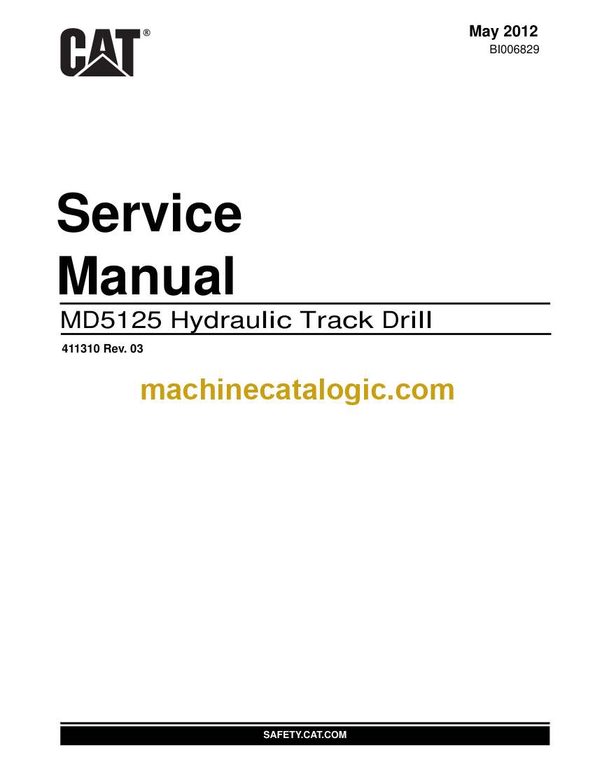 The Cat MD5125 Hydraulic Track Drill is engineered for rapid, consistent drilling with robust hydraulic power. This Service Manual maps the drill’s propulsion motors, cooling system layout, rotary drive assembly, and feed mechanisms. It helps technicians track down heat buildup, inconsistent torque delivery, or unexpected pressure drops during long drilling cycles.