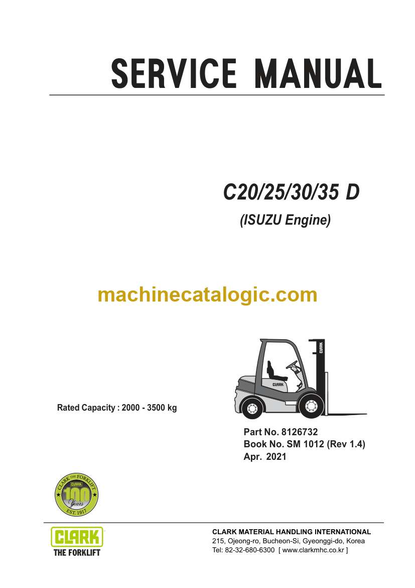 Model: C20, C25, C30, C35 D Isuzu Engine Forklift