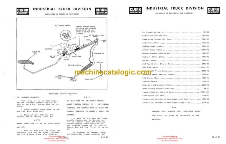 Lift and Ti It Cyl inders inspect; Lift Chains check and adjust;