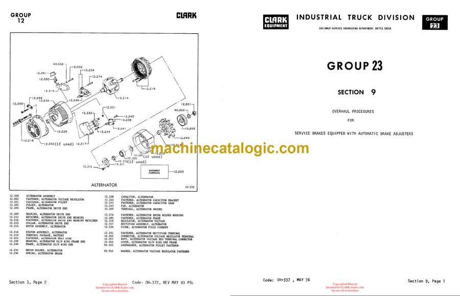 Clark C500 235 Forklift Overhaul Manual (OH367)
