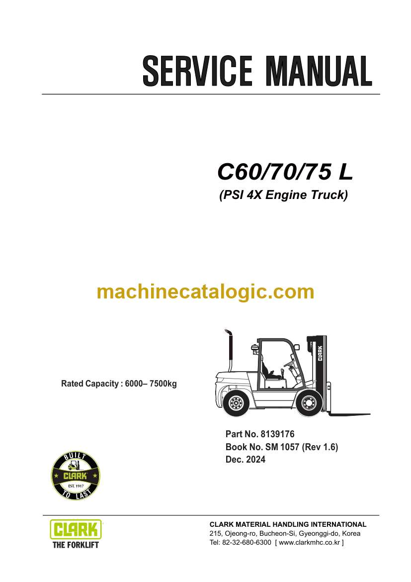 Clark C60, C70, C75 L PSI 4X Engine Truck Forklift Service Manual (SM1057)
