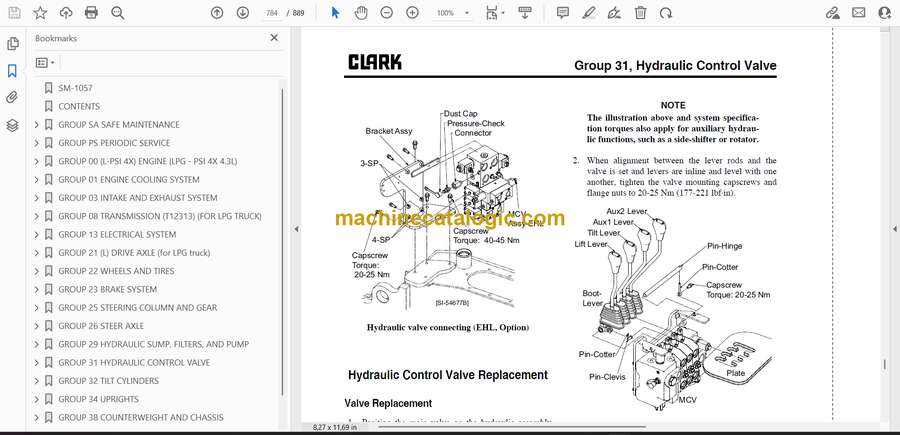 Clark C60, C70, C75 L PSI 4X Engine Truck Forklift Index: