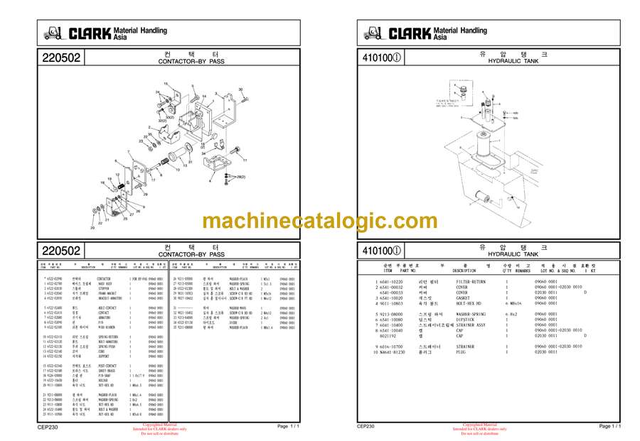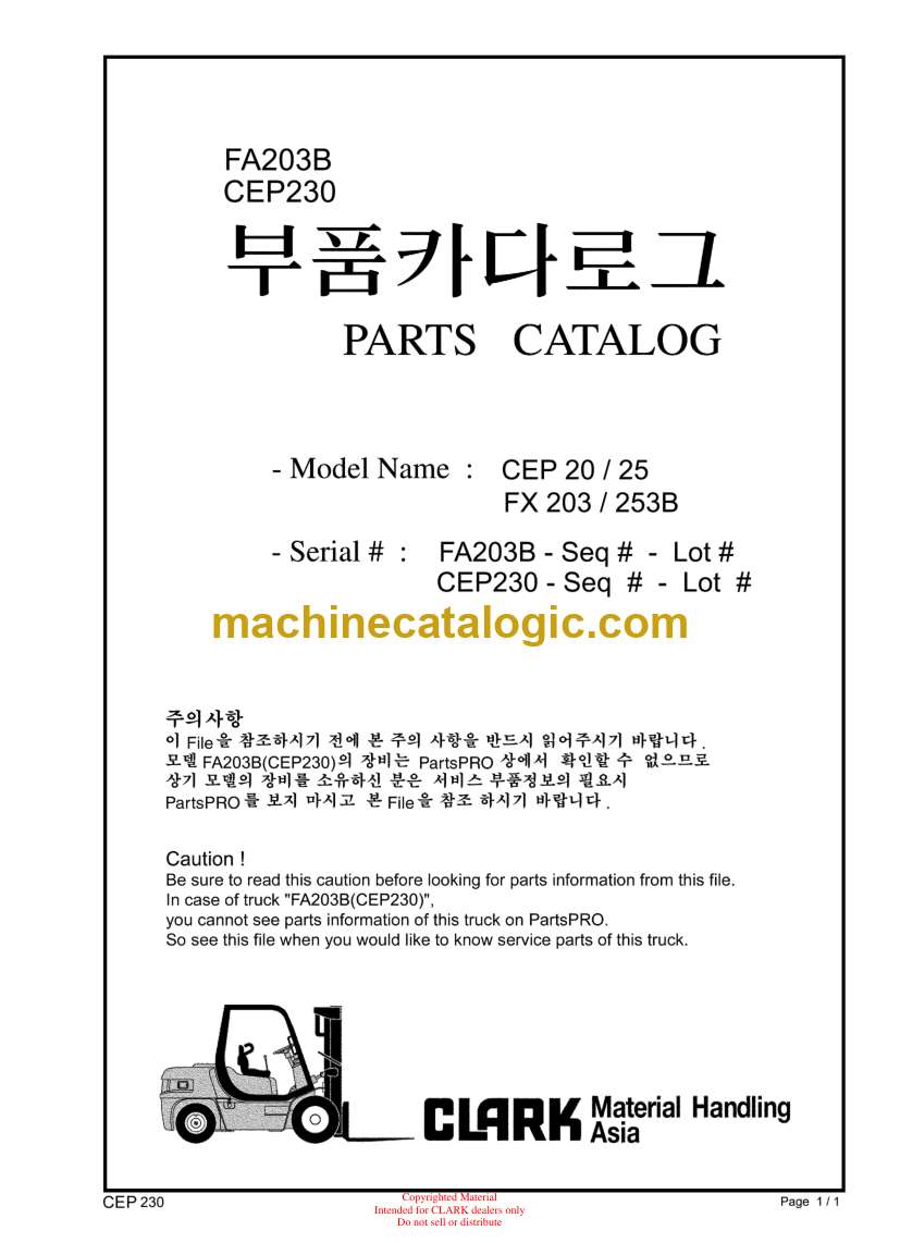 Clark CEP20, CEP25, FX203, FX253B Forklift Parts Manual (CEP230)