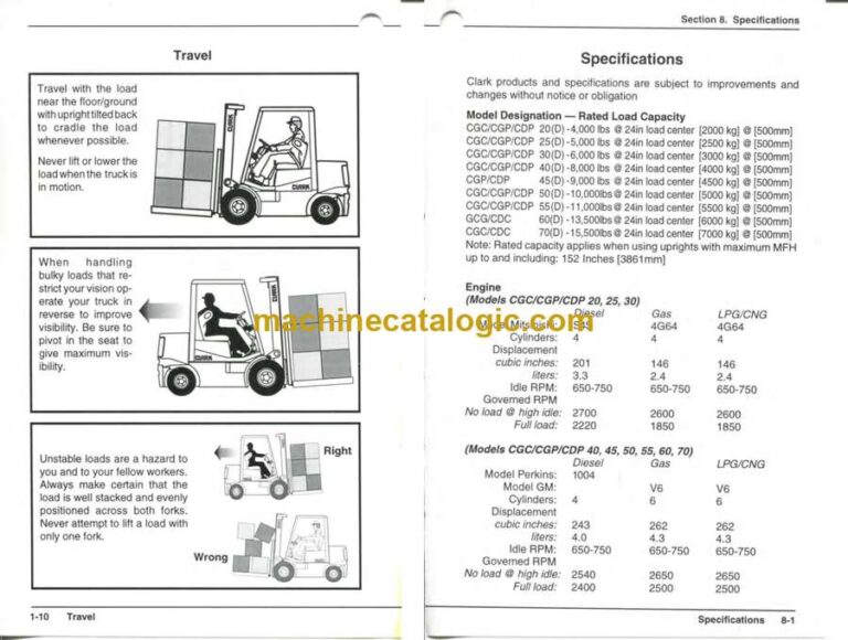 Clark CGC20-30, CGP20-30, CDP20-30, CGC40-55, CGP40-55, CDP40-55, CGC60-70, CDC60-70 Forklift Index: