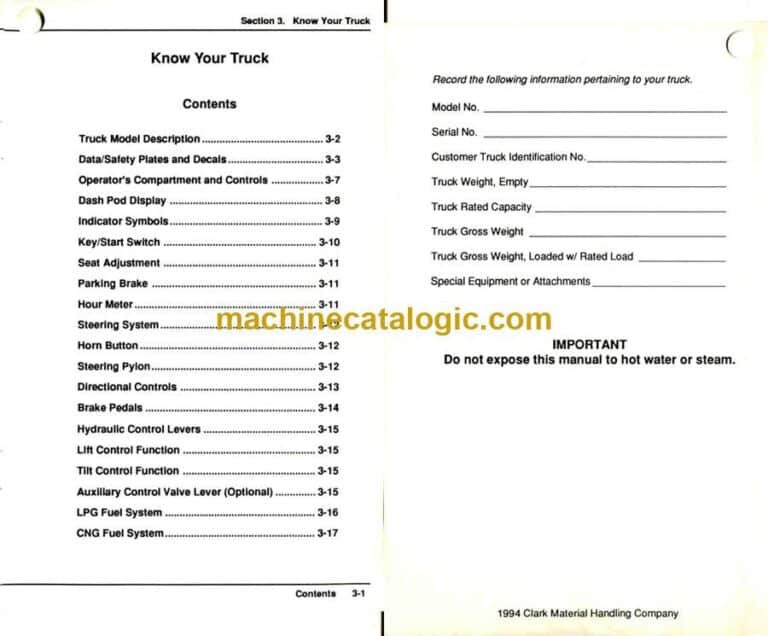 Clark CGC20-30H, CGP20-30H, CDP20-30H Forklift Operators Manual (OM-602)