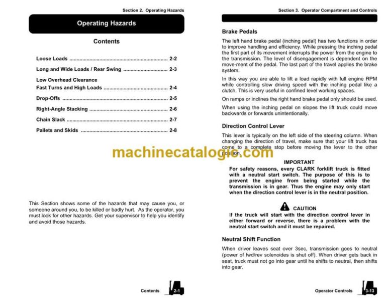 Clark CGC40, CGC50, CGC55, CGC60, CGC70 L Forklift Operators Manual (OM-764)