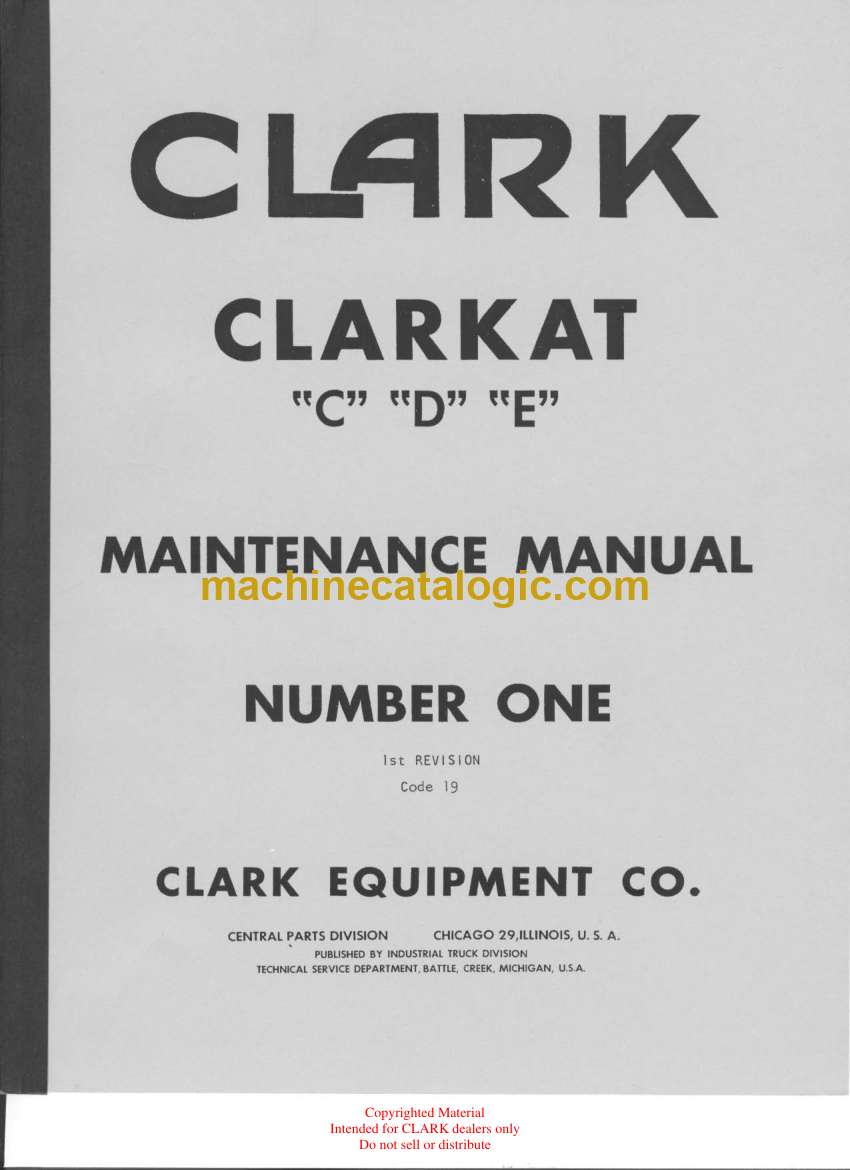 Clark Clarkat C, D, E Tow Tractor Maintenance Manual (CODE_19)