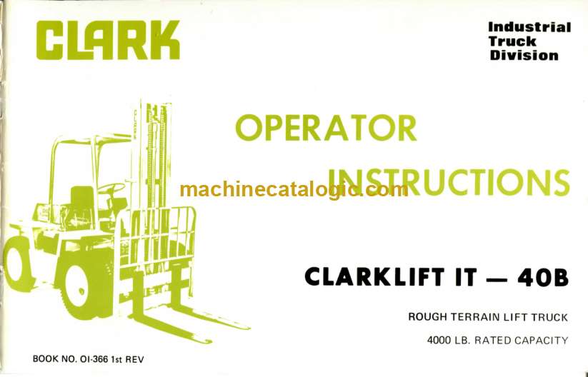 Clark Clarklift 40B Lift Truck Operators Manual (OI-366)