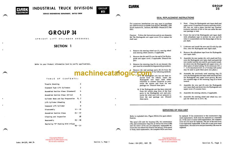 Clark Clarklift C500 Forklift Overhaul Instructions (OH433)