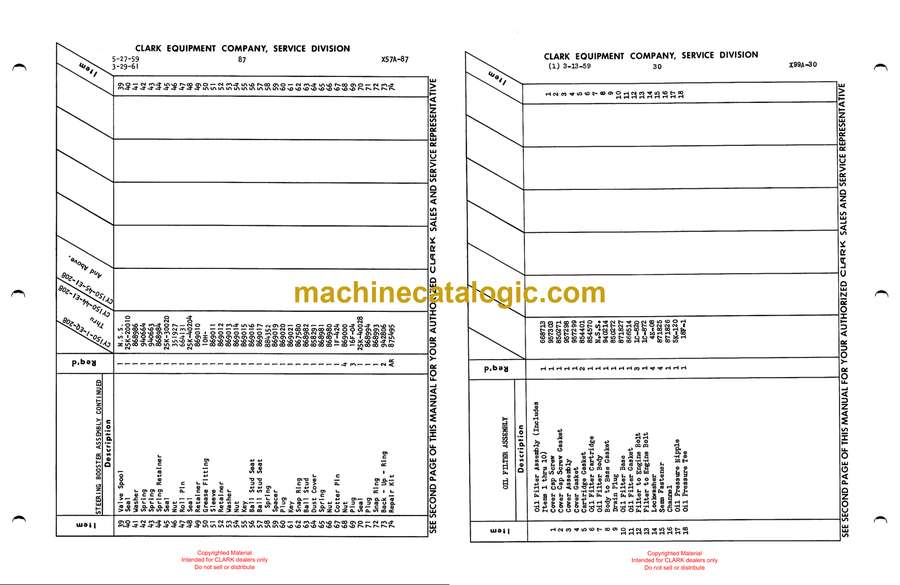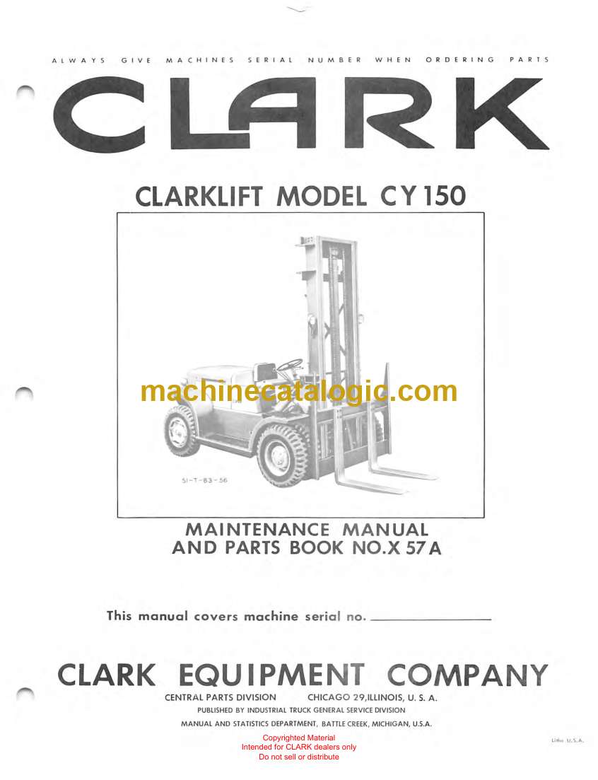 Clark Clarklift CY150 Forklift Parts Manual (X57A)