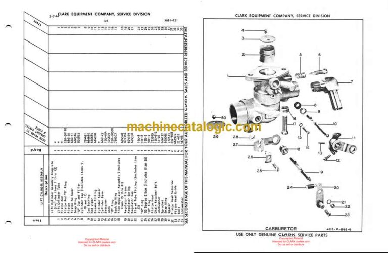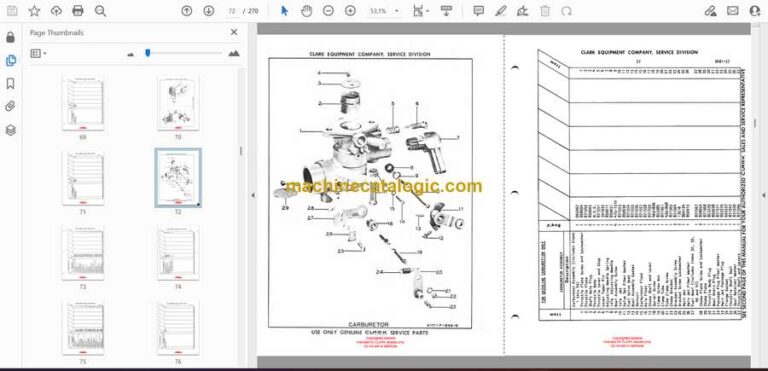 A Clark F40B is a small workhorse you’ll see loading pallets in warehouses, docks, and tight industrial yards. This parts manual is what I keep handy when I’m trying to match what I see on the truck to the correct Clark part number. If, for example, the steering axle end is worn or a brake linkage is bent, I’ll use this book to trace the exact subcomponents, confirm the right version, and avoid ordering a pedal, seal, or gauge that doesn’t fit your specific truck.