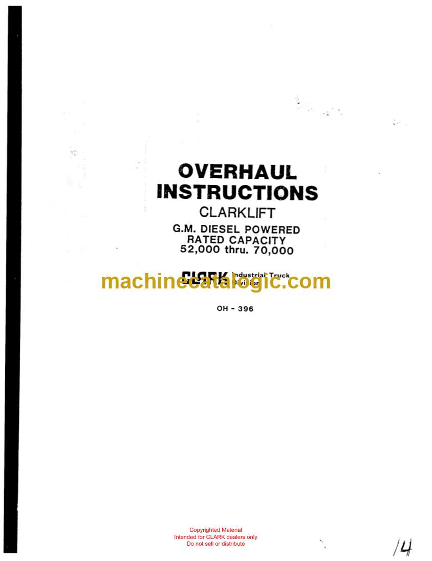 Clark Clarklift G.M. Diesel Powered Overhaul Instructions (OH396)