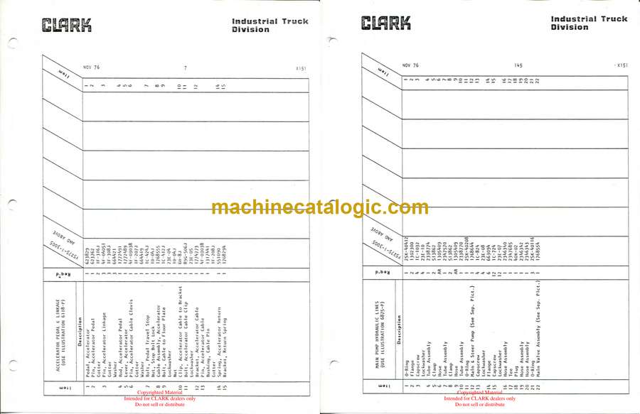 Model: Clarklift Y5275, CY525, CT625 and CY700 Diesel Forklift