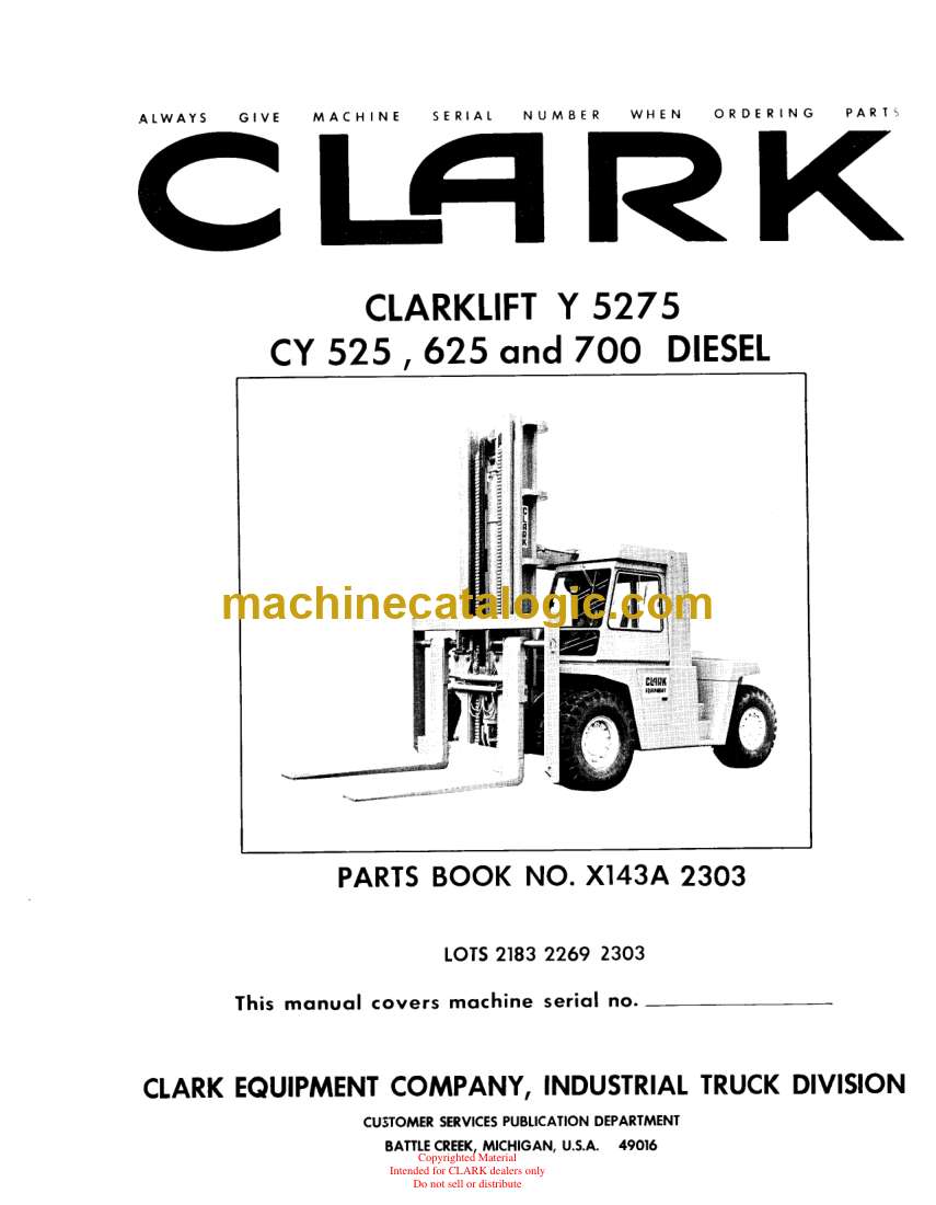 Model: Clarklift Y5275 CY525, CY625, CY700 Diesel Forklift