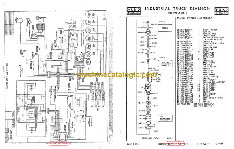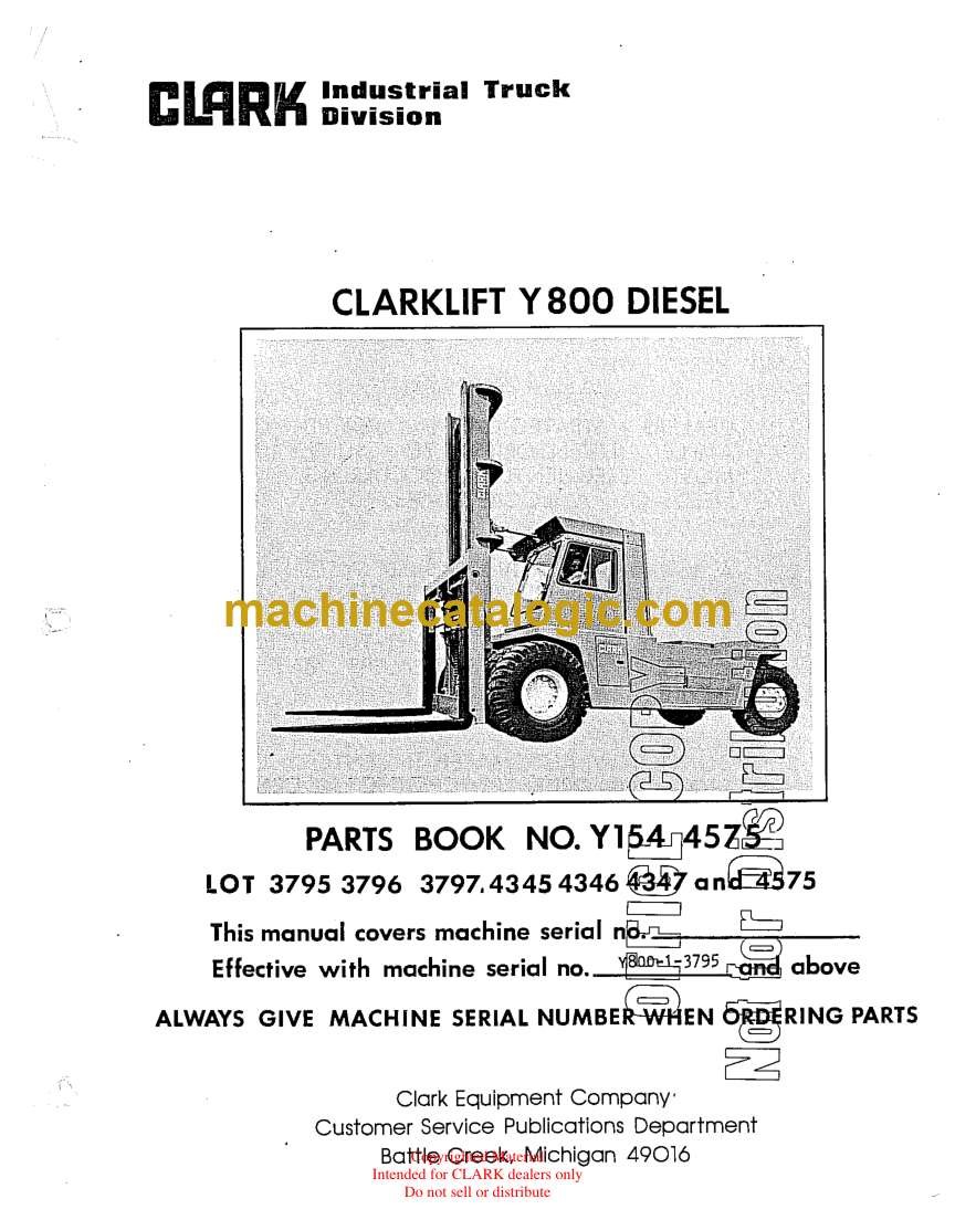 Clark Clarklift Y800 Diesel Forklift Parts Manual (Y154)