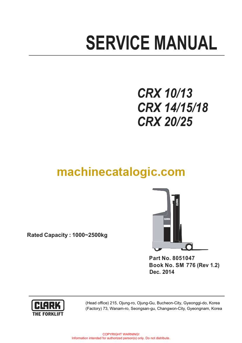 Clark CRX10, CRX13, CRX14, CRX15, CRX18, CRX20, CRX25 Reach Truck Forklift Service Manual (SM776)