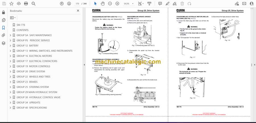 Clark CRX10, CRX13, CRX14, CRX15, CRX18, CRX20, CRX25 Reach Truck Forklift Index: