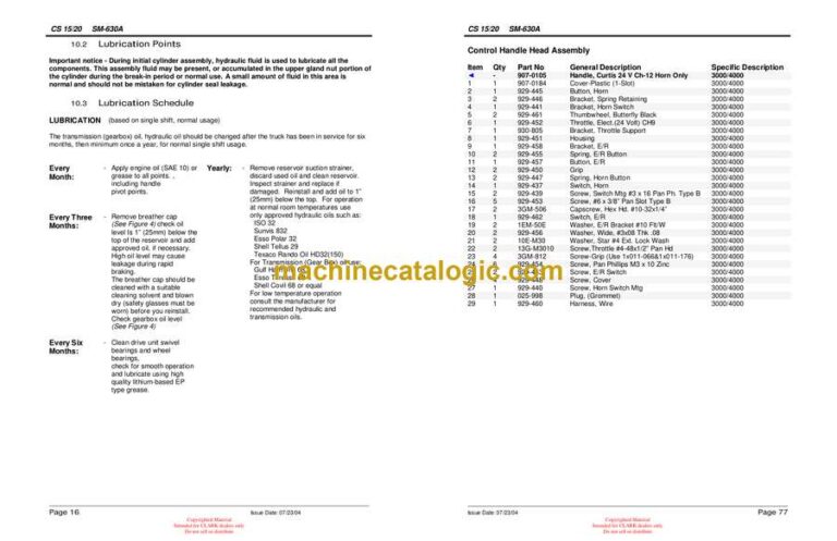 10.3 Lubrication Schedule ……………………………………………………………………………………………16