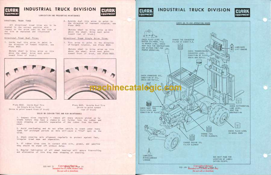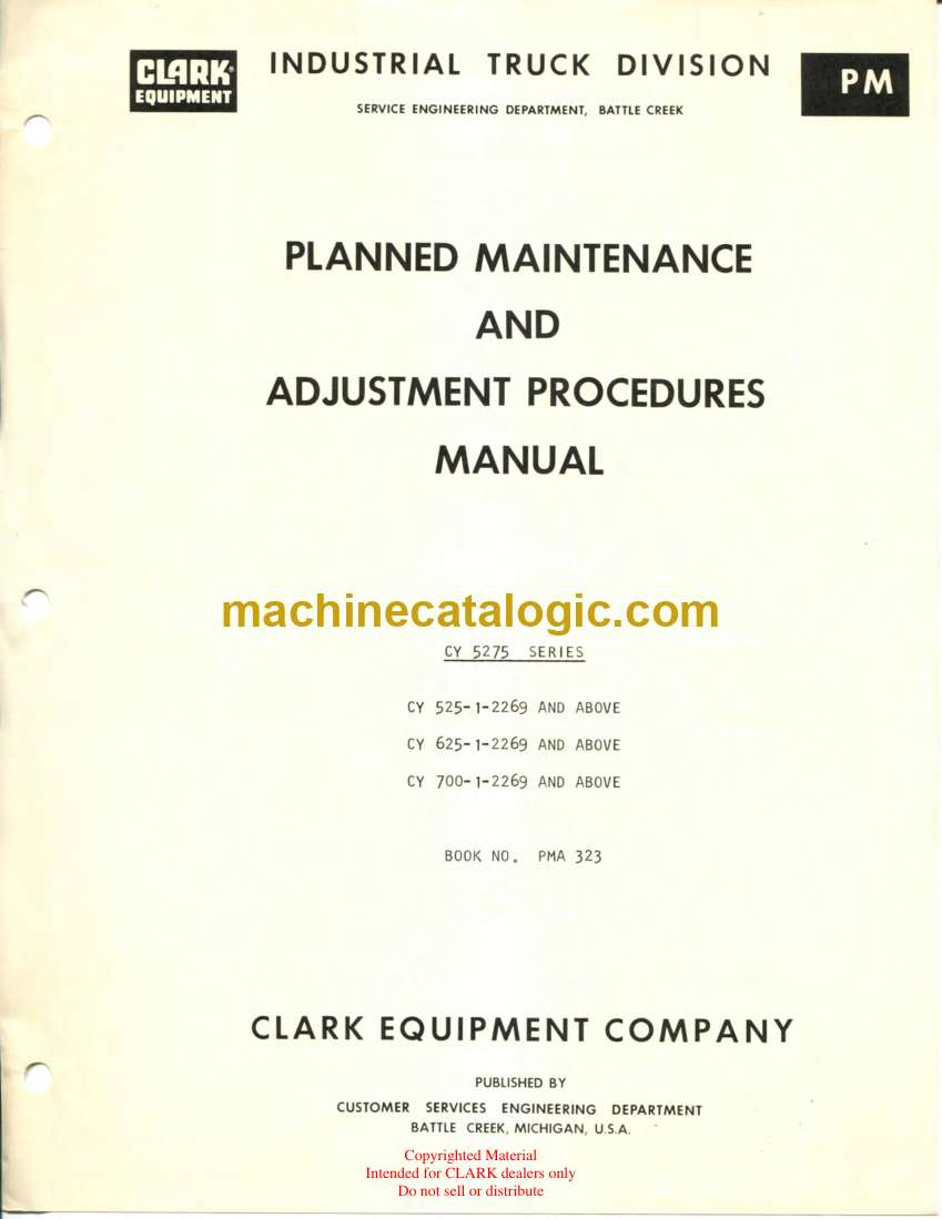 Clark CY5275 Series, CY525, CY625, CY700 Planned Maintenance and Adjustment Procedures Manual (PMA323)