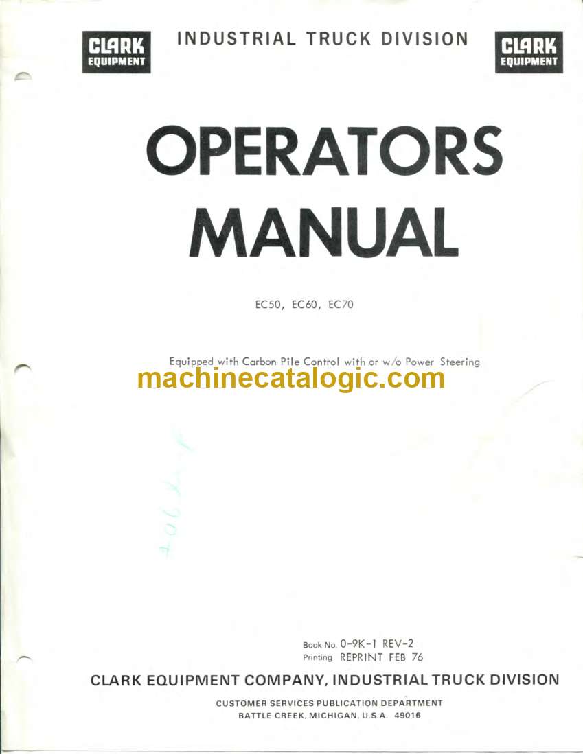 Clark EC50, EC60, EC70 Forklift Operators Manual (O-9K-1)