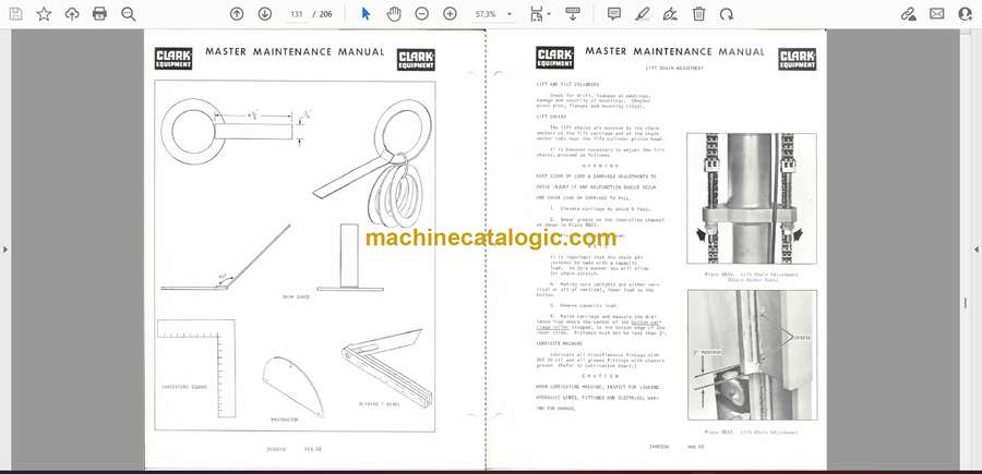 I ift cyl inder and tilt cyl inder, inspect; I ift chains, check and