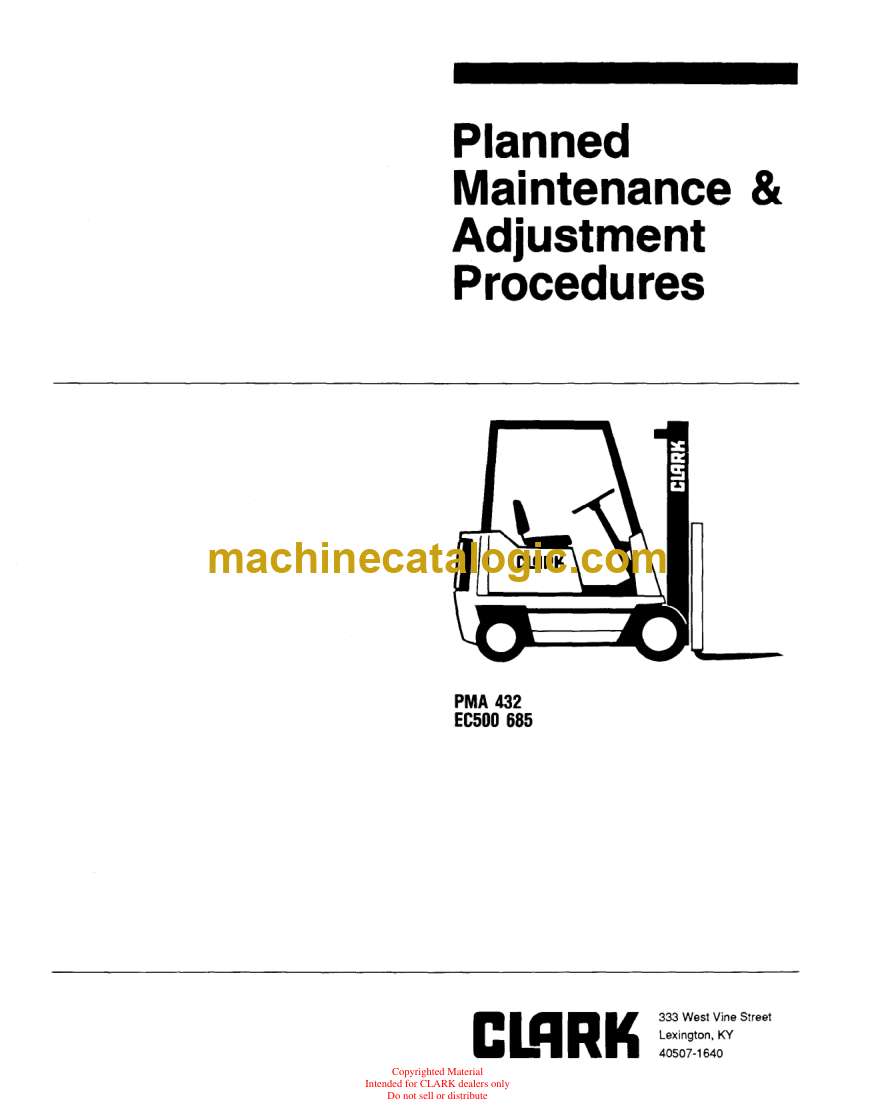 Clark EC500 685 Forklift Planned Maintenance and Adjustment Procedures Manual (PMA432)