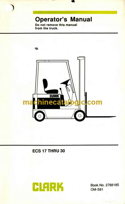 Clark ECS 17 thru 30 Forklift Operators Manual (OM-581)