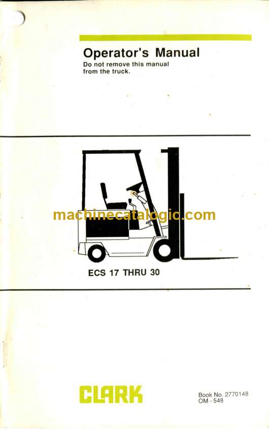Clark ECS17 thru 30 Forklift Operators Manual (OM-548)