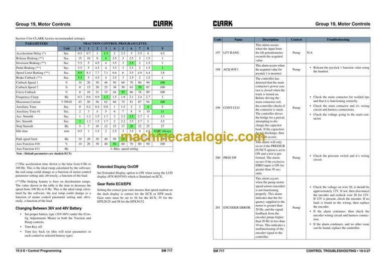 Clark ECX20, ECX25, ECX30, ECX30x, ECX32, EPX20, EPX25, EPX30, EPX32 Forklift Service Manual (SM717)