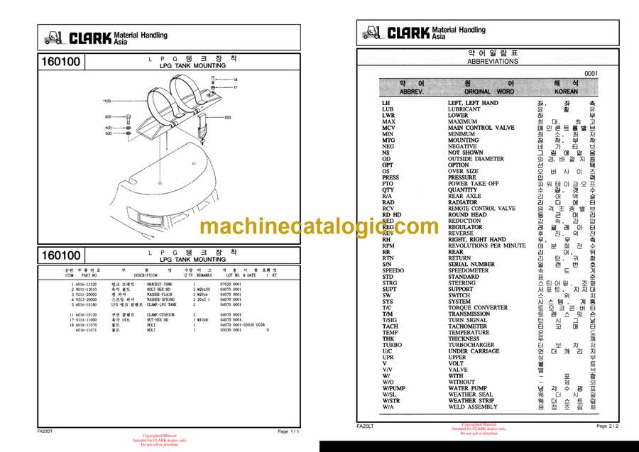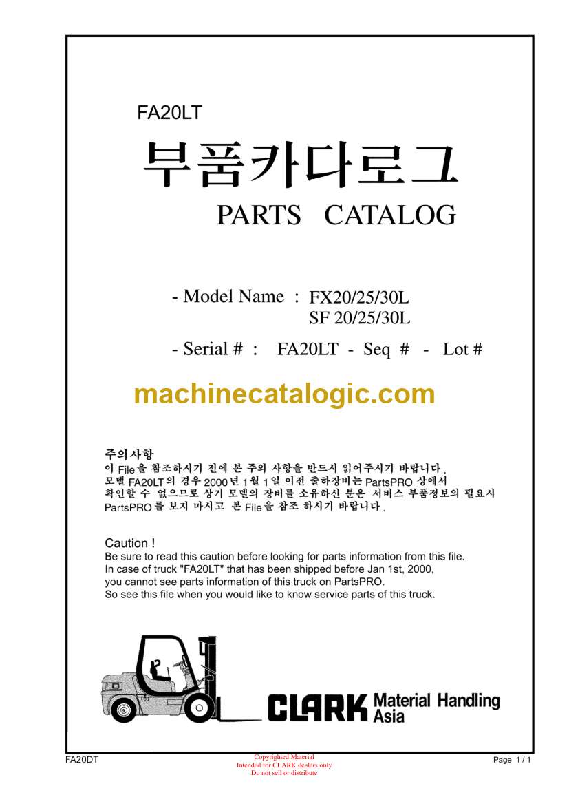 Clark FX20, FX25, FX30L, SF20, SF25, SF30L Forklift Parts Manual (FA20LT)