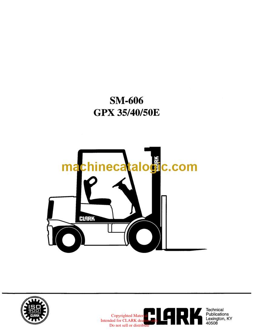 Clark GPX35, GPX40, GPX50E Forklift Service Manual (SM606)